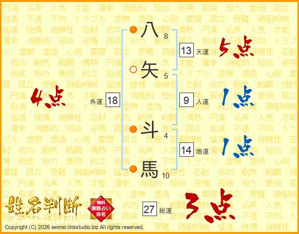 八矢斗馬さんの総運は27画の3点!