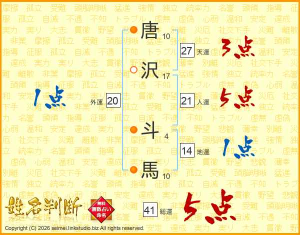 唐沢斗馬さんの総運は41画の5点!