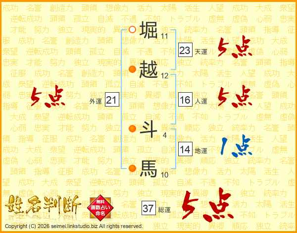 堀越斗馬さんの総運は37画の5点!