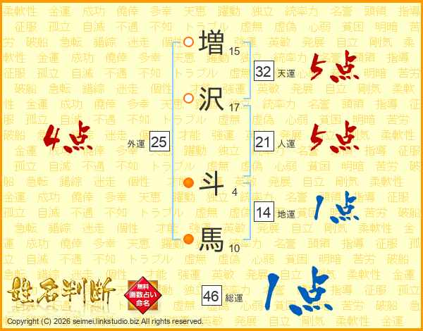 増沢斗馬さんの総運は46画の1点!