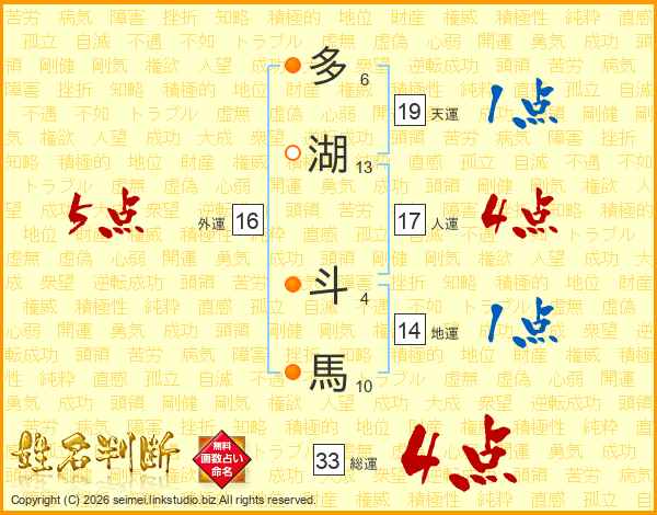 多湖斗馬さんの総運は33画の4点!