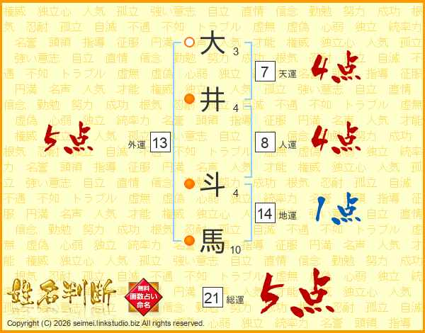 大井斗馬さんの総運は21画の5点!