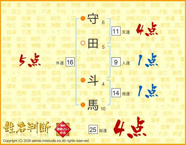 守田斗馬さんの総運は25画の4点!