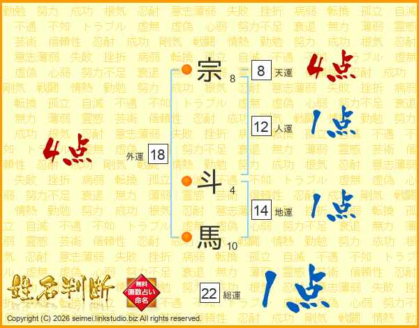 宗斗馬さんの外運は18画の4点!