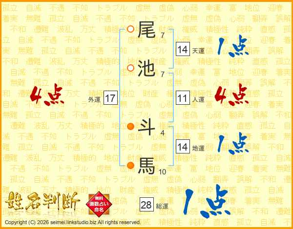 尾池斗馬さんの天運は14画の1点!