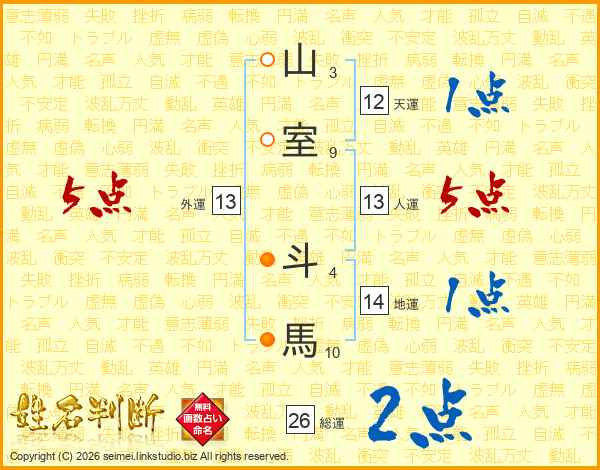 山室斗馬さんの総運は26画の2点!