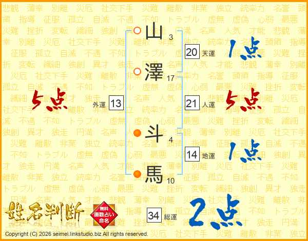 山澤斗馬さんの人運は21画の5点!