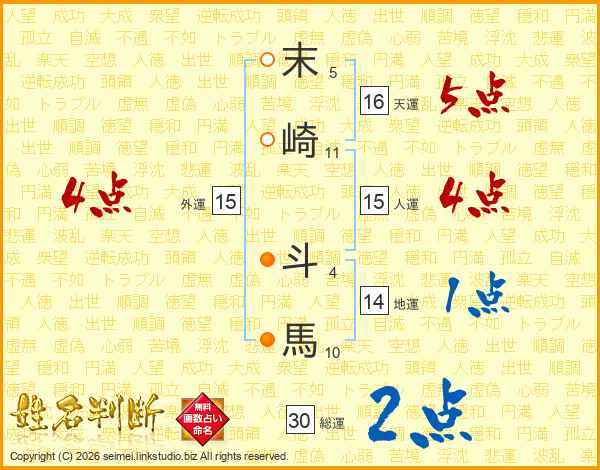 末崎斗馬さんの総運は30画の2点!