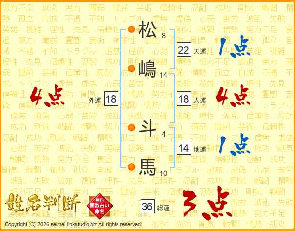 松(8画)嶋(14画) 斗(4画)馬(10画)