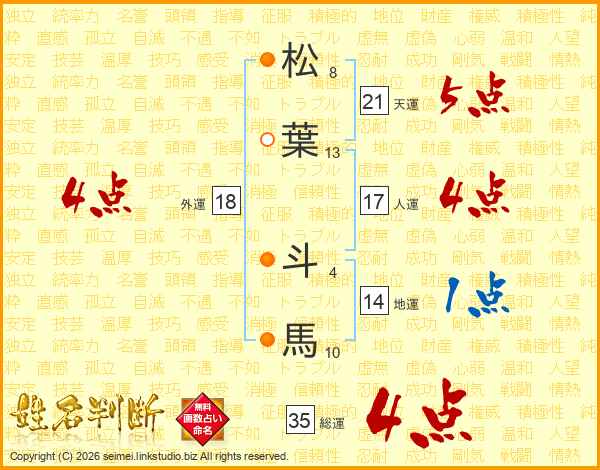 松(8画)葉(13画) 斗(4画)馬(10画)