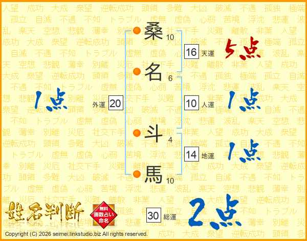 桑(10画)名(6画) 斗(4画)馬(10画)
