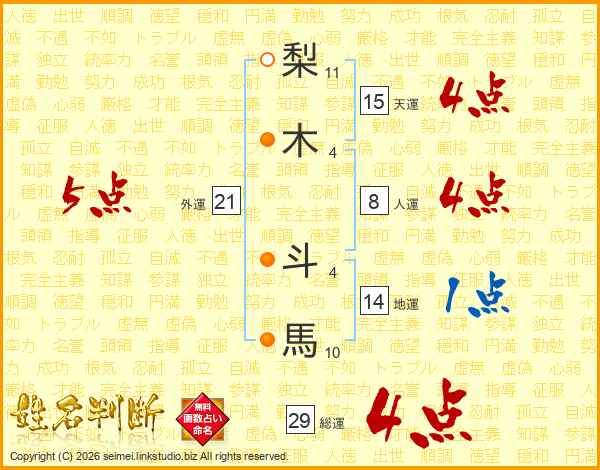 梨木斗馬さんの総運は29画の4点!