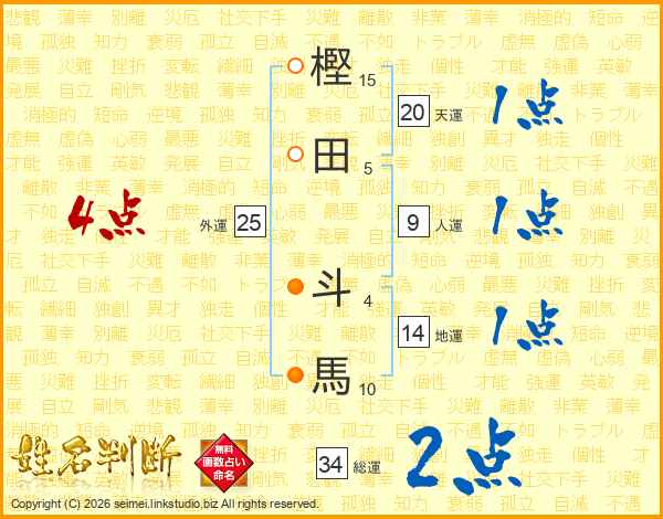樫田斗馬さんの総運は34画の2点!