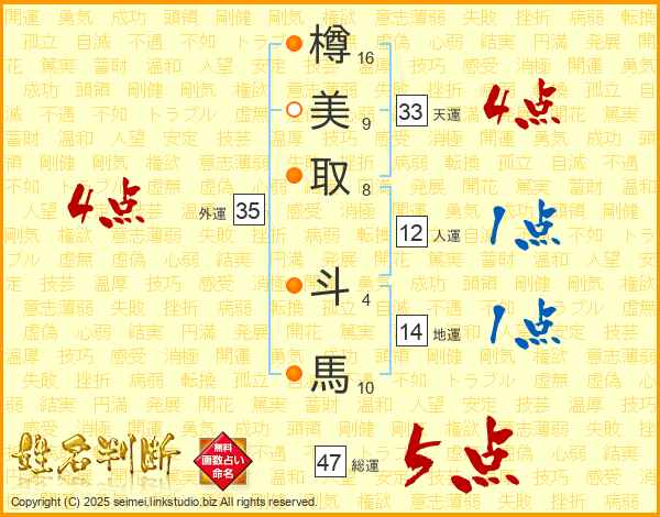樽美取斗馬さんの総運は47画の5点!