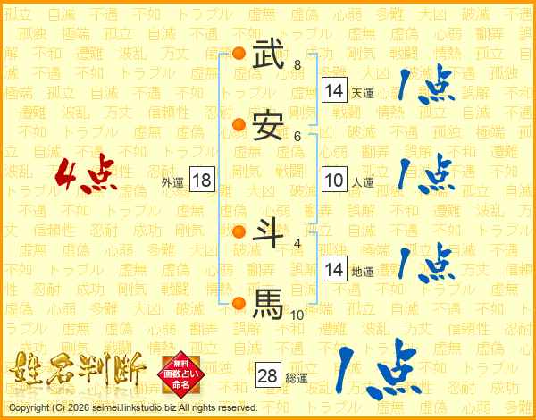 武安斗馬さんの外運は18画の4点!