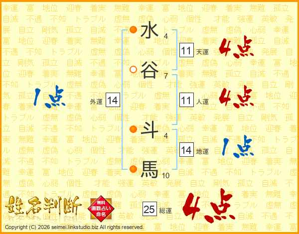 水谷斗馬さんの総運は25画の4点!