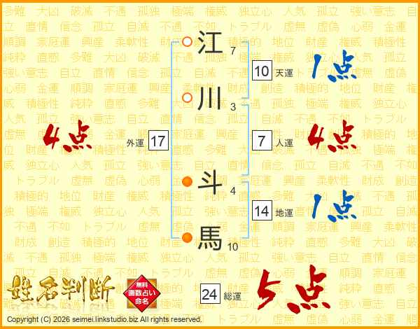 江川斗馬さんの総運は24画の5点!