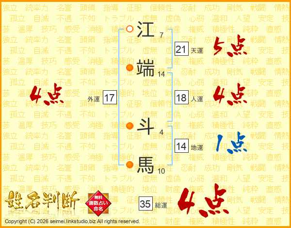 江端斗馬さんの総運は35画の4点!