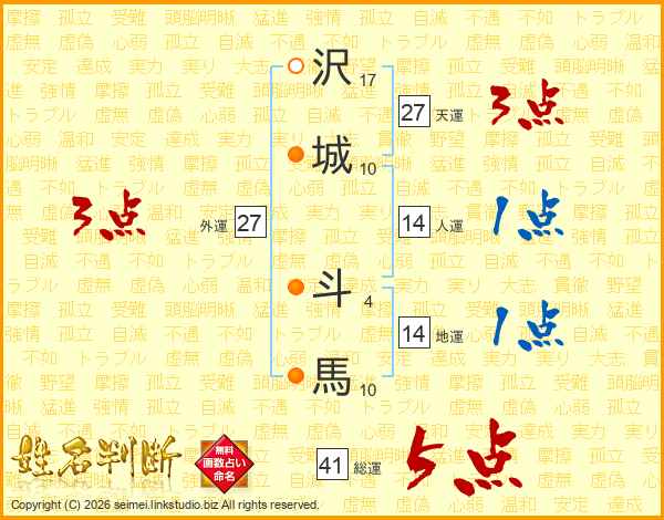 沢(17画)城(10画) 斗(4画)馬(10画)