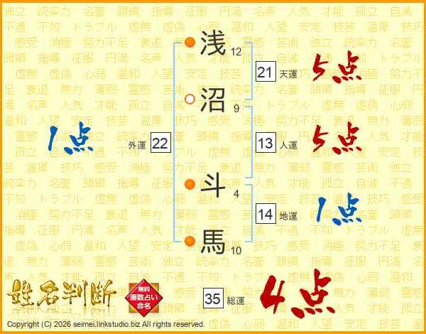 浅沼斗馬さんの天運は21画の5点!