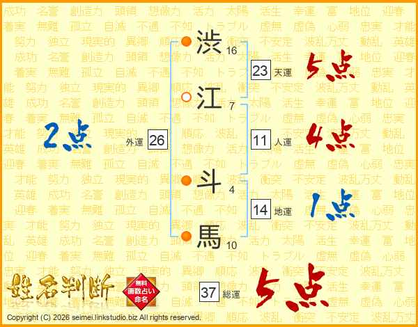 渋江斗馬さんの総運は37画の5点!