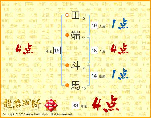 田端斗馬さんの総運は33画の4点!