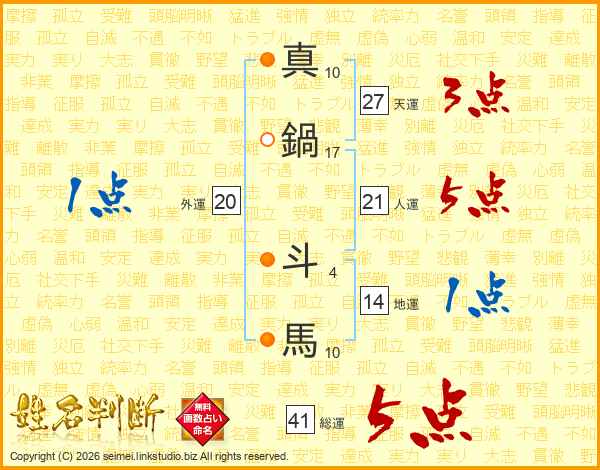 真鍋斗馬さんの総運は41画の5点!