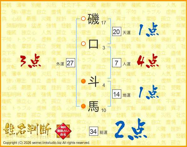 磯(17画)口(3画) 斗(4画)馬(10画)
