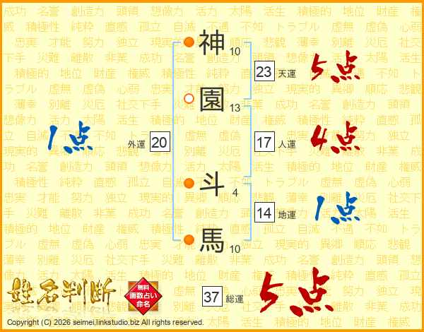 神園斗馬さんの総運は37画の5点!