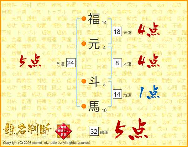 福元斗馬さんの総運は32画の5点!