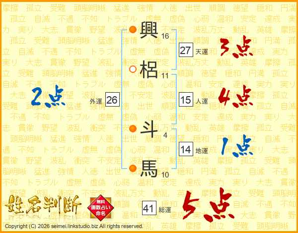 興(16画)梠(11画) 斗(4画)馬(10画)