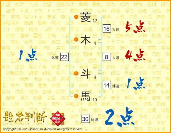 菱木斗馬さんの総運は30画の2点!