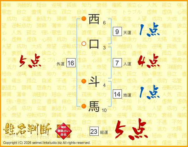 西口斗馬さんの総運は23画の5点!