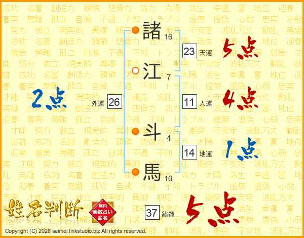 諸(16画)江(7画) 斗(4画)馬(10画)