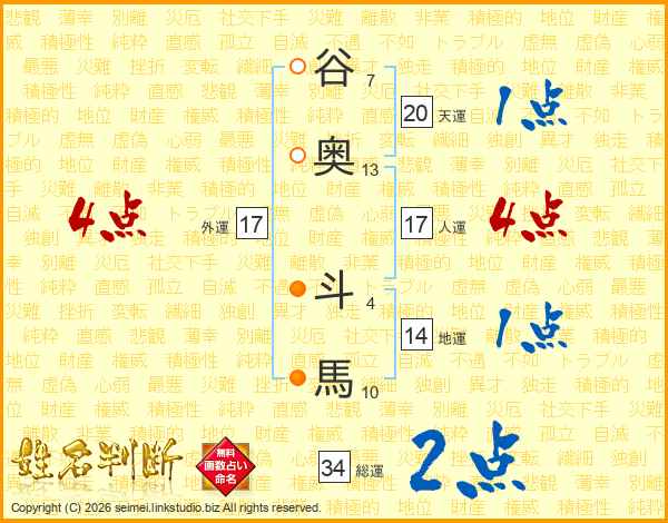 谷(7画)奥(13画) 斗(4画)馬(10画)