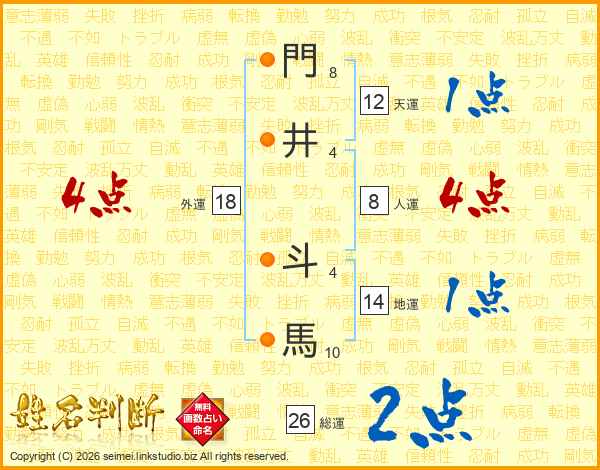 門(8画)井(4画) 斗(4画)馬(10画)