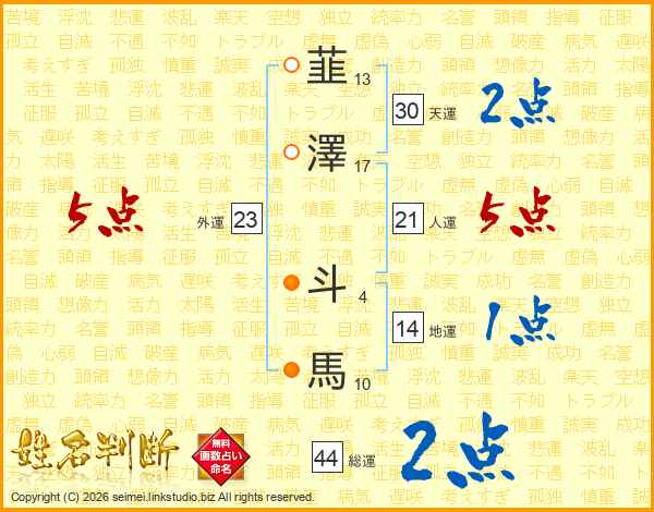 韮(13画)澤(17画) 斗(4画)馬(10画)