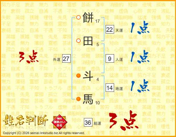 餅田斗馬さんの総運は36画の3点!