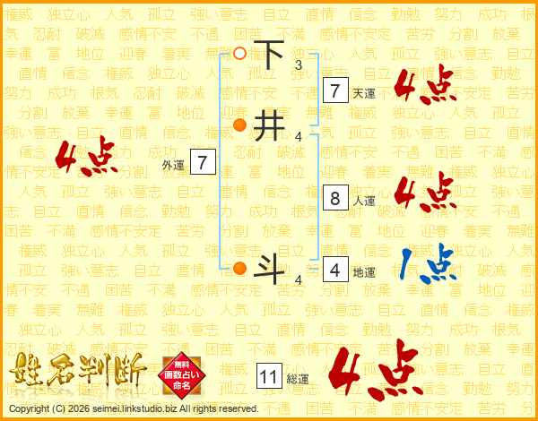 下井斗さんの総運は11画の4点!