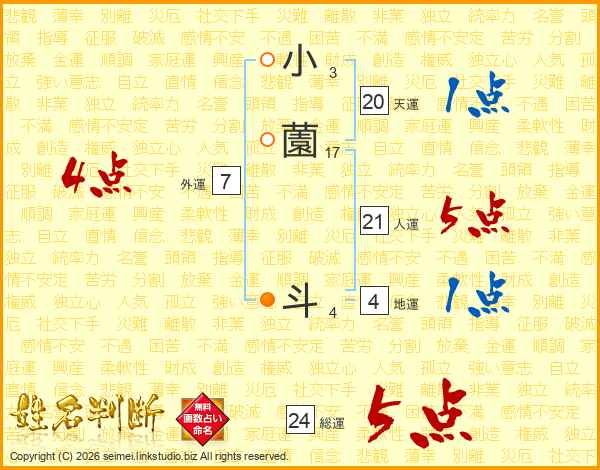 小薗斗さんの外運は7画の4点!