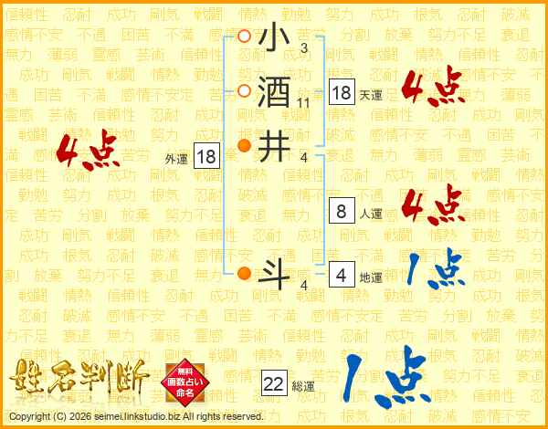 小酒井斗さんの天運は18画の4点!