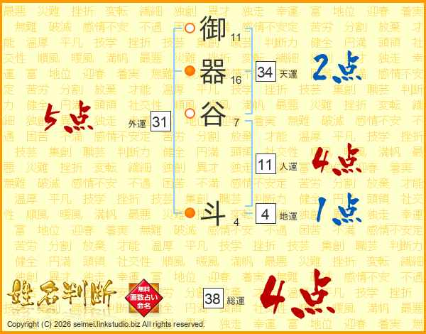御器谷斗さんの総運は38画の4点!