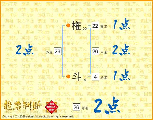 権斗さんの総運は26画の2点!