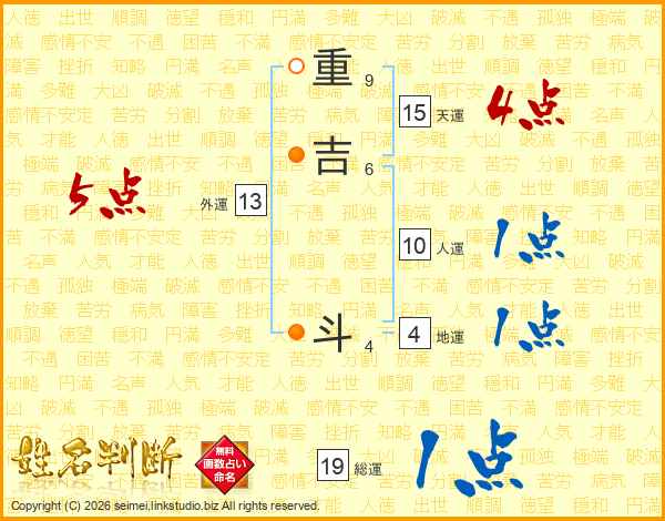 重吉斗さんの総運は19画の1点!