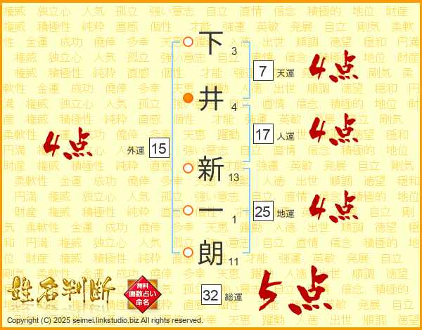 下井新一朗さんの地運は25画の4点!