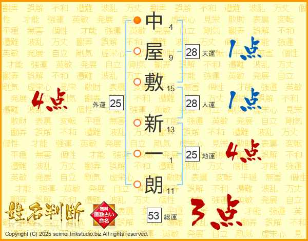 中屋敷新一朗さんの地運は25画の4点!