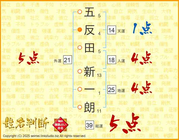 五反田新一朗さんの総運は39画の5点!