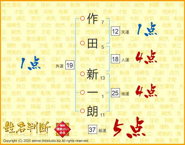作(7画)田(5画) 新(13画)一(1画)朗(11画)