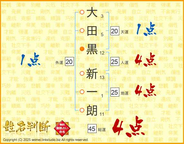 大田黒新一朗さんの総運は45画の4点!