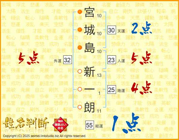 宮城島新一朗さんの地運は25画の4点!